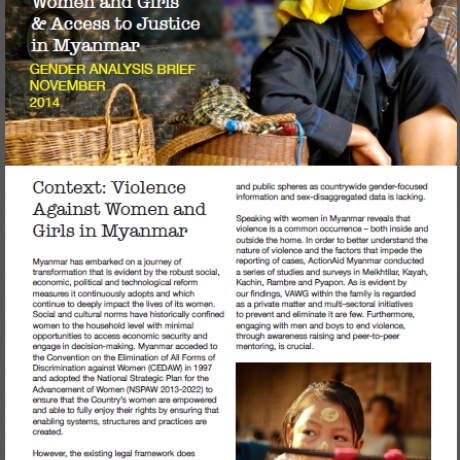 Gender Analysis Brief 2014: Violence Against Women and Girls & Access to Justice in Myanmar